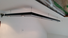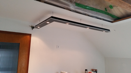 Schlicht, klein, die L-Form lampe, die hervorragend zur Ausleuchtung etlicher Räume passt! Sie ist an Drahtseilen befestigt und wird auch so mit strom versorgt!