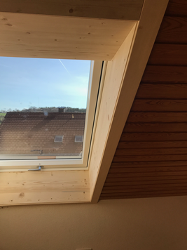 Hier sehen sie eine Dachfenster verkleidung aus Holz.