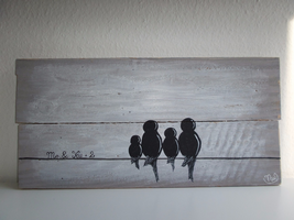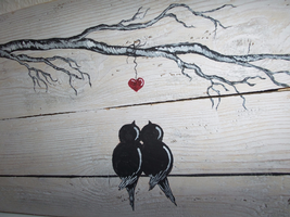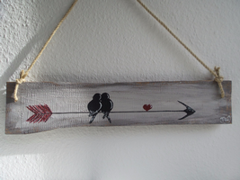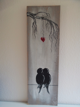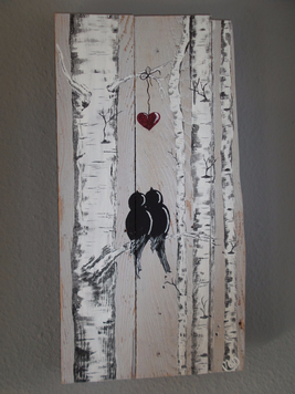 Wunderschöne Acrylbilder auf rustikalem Altholz. Hier als Beispiel Verliebte Vögel. Alle hier aufgeführten Bilder sind alles Unikate.